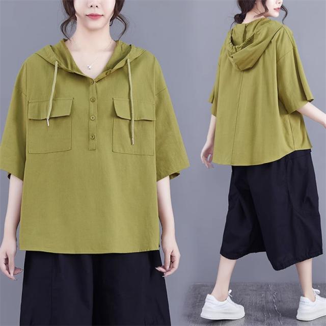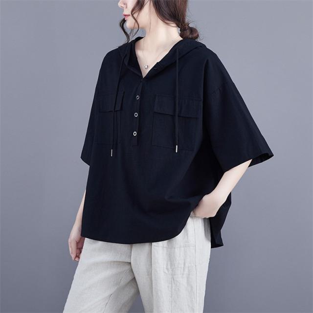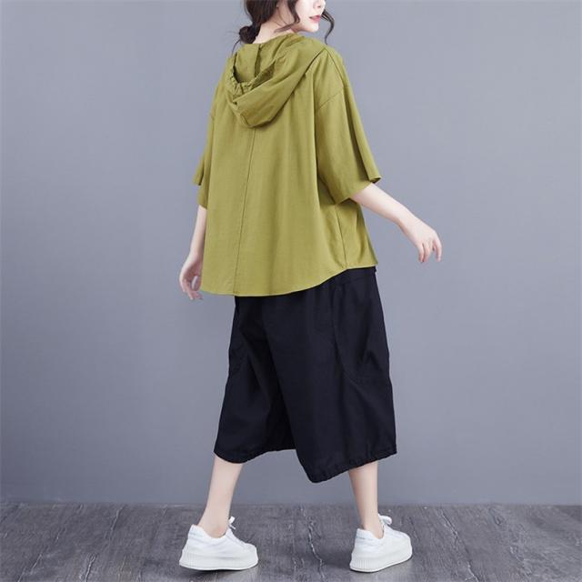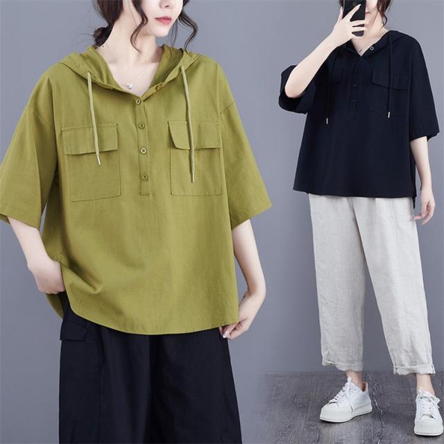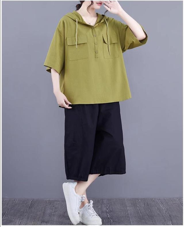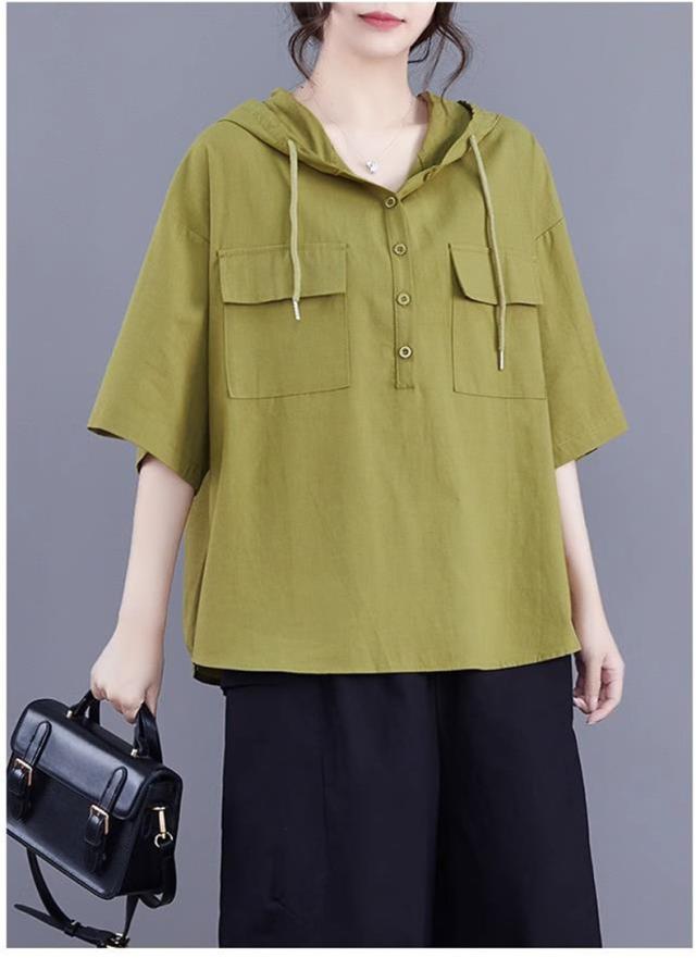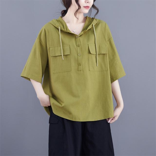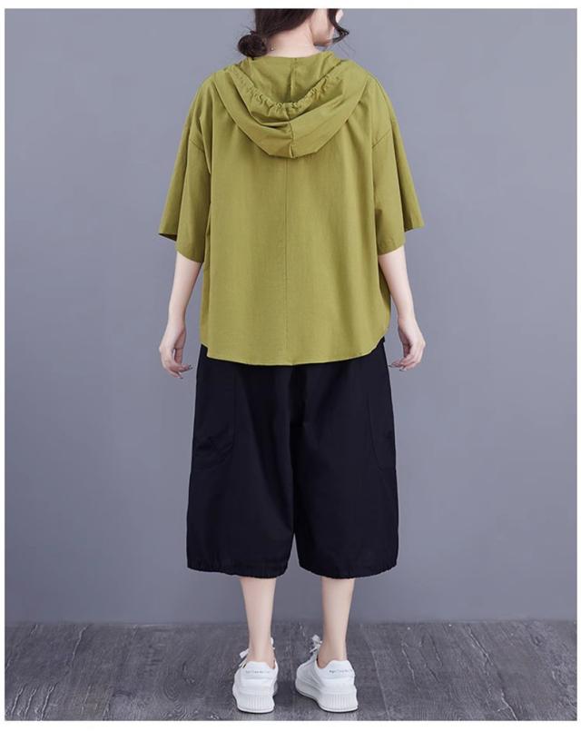 半袖トップス パーカー風 フード付き プルオーバー レディース 春夏 ゆったりとしたシルエット ビッグサイズ 体型カバー 今シーズンのオススメitem
