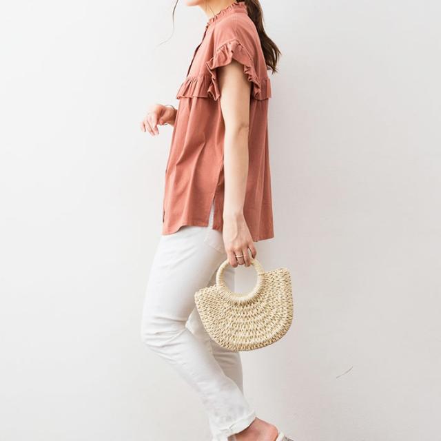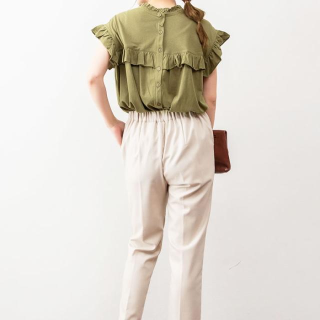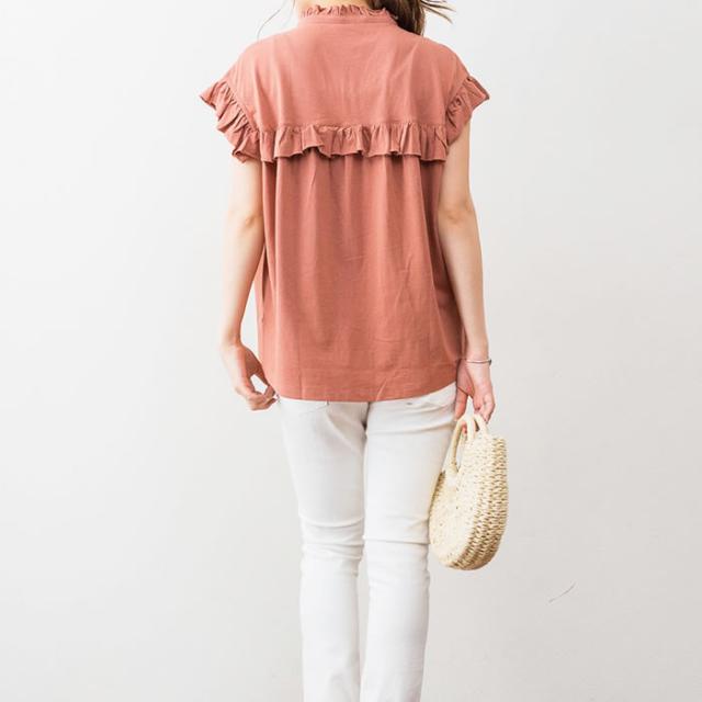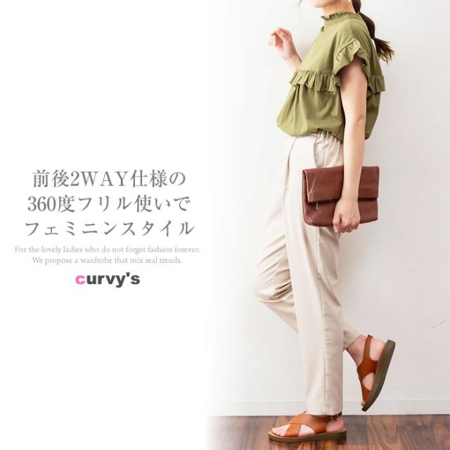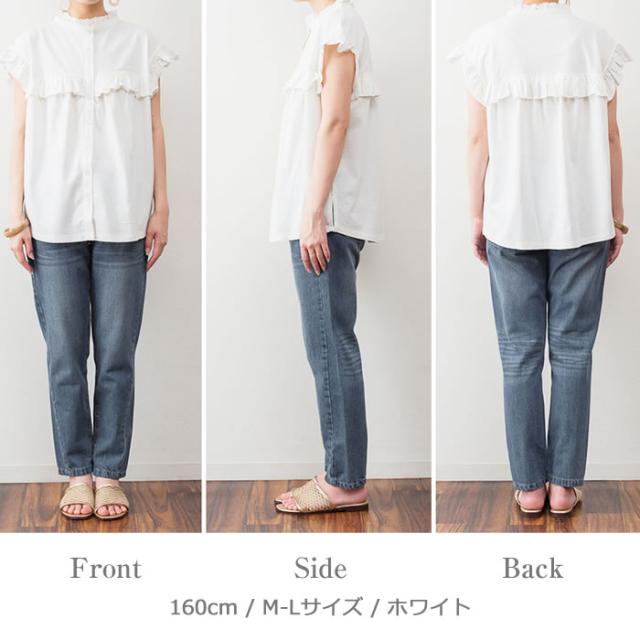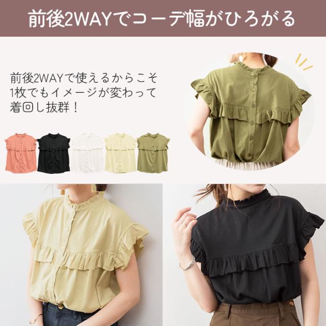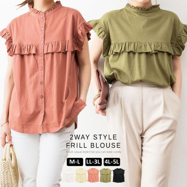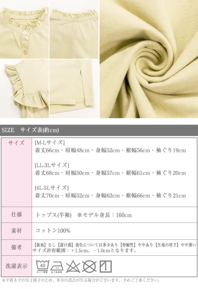 | 商品説明 | 前後2WAY仕様のフリルブラウス風のカットソー。360度フリル使いで、フェミニンスタイルが楽しめます。前ボタンにしてシャツ風に着ても、ボタンを後ろにしてプルオーバー風に来てもGOOD!嬉しい前後2WAYだから気分に合わせてアレンジが出来きます。綺麗めで高見えするデザインで、インでもアウトでもきれいに決まる!丁度良い丈感にもこだわりました。肌ざわり優しいコットン 100%の素材で、暑い時期はさらっと快適に過ごせるカットソーです。どんな方にも気軽に楽しんでいただけるようM-L、LL-3L、4L-5Lの3サイズご用意しました。大きいサイズは、ビッグシルエットでの着こなしやマタニティの方にもおすすめです! |