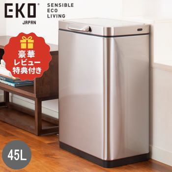 【レビュー記入で高級ビアカッププレゼント&19日 20時〜 最大2,000円OFFクーポン】EKO ゴミ箱 ダストボックス タッチ式ゴミ箱 ごみ箱 フタ付き ふた付き タッチバー式 充電式 ステンレス製 45L 45リットル 横型 エレクトリックタッチビン EK9180RMT-45L シルバー