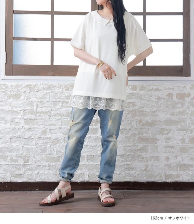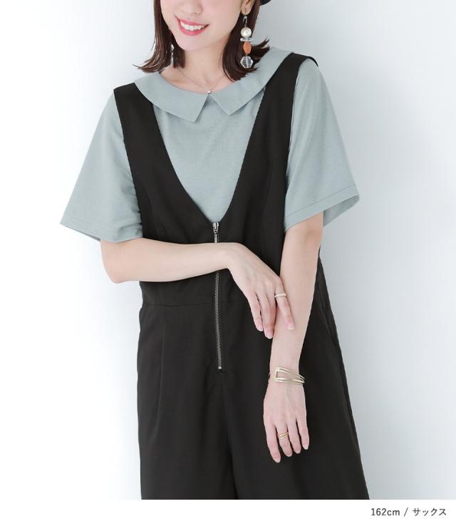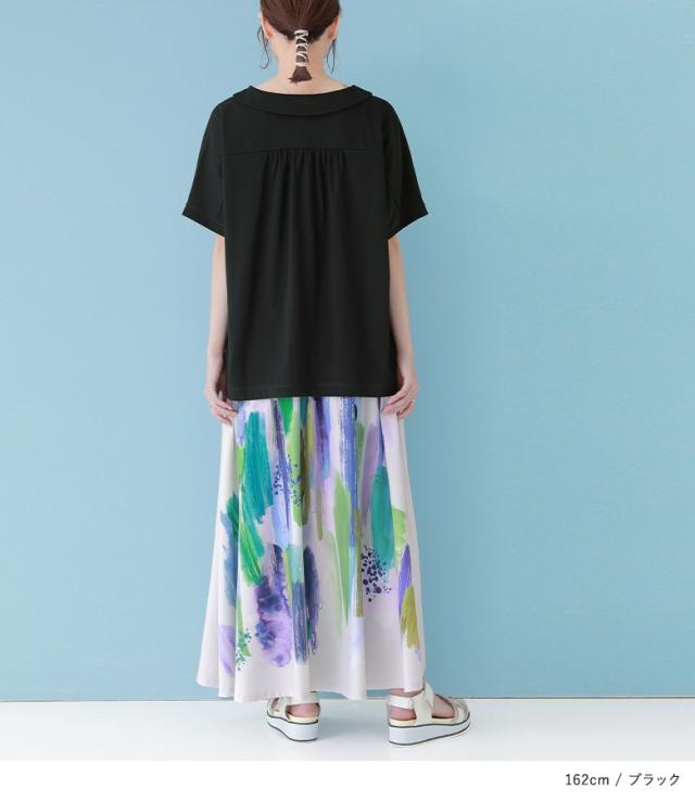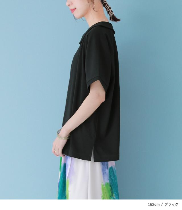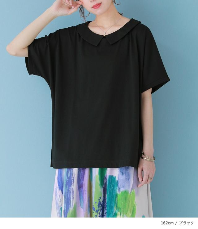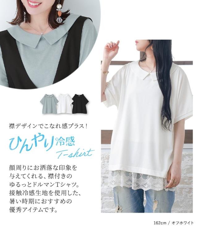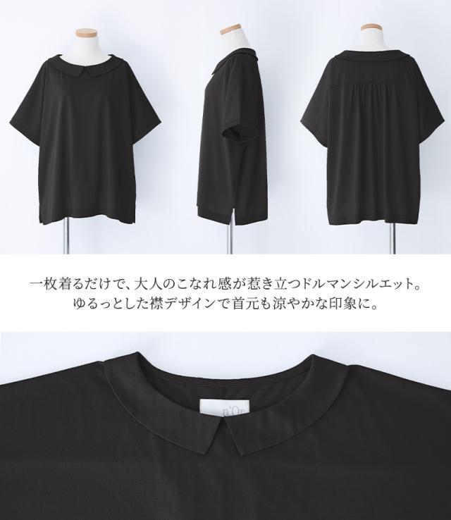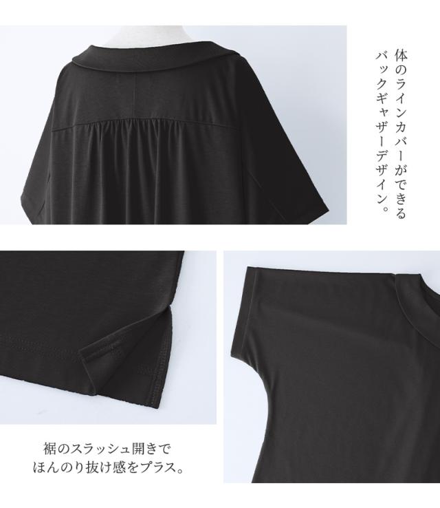 『接触冷感襟付きドルマンTシャツ』 ※メール便可※【10】[カットソー レディース トップス 半袖 丸襟 ひんやり 冷感素材 ブラウス コットン混 涼しい バックギャザー tkn0016]
