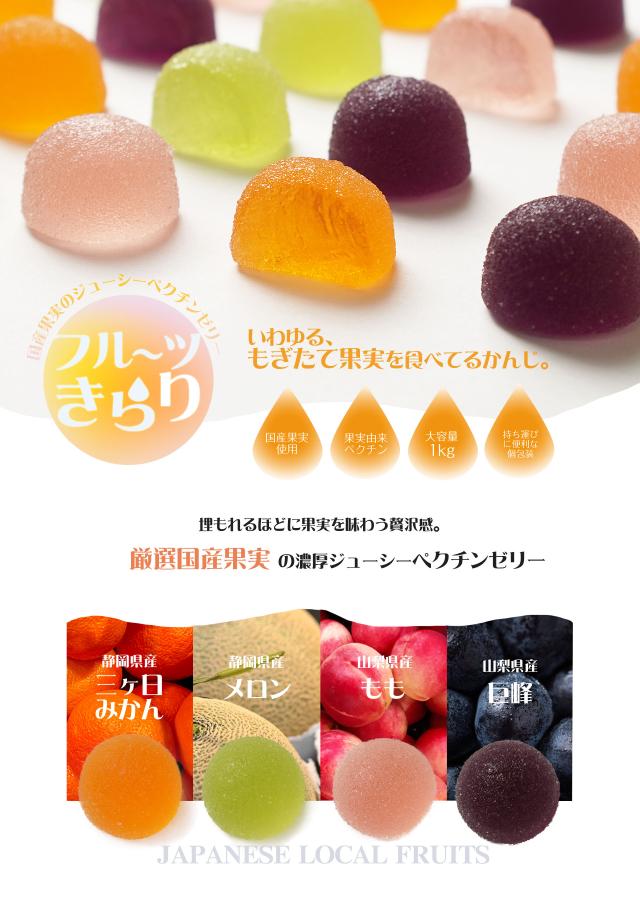 フルーツきらり(1kg) ペクチンゼリー ゼリー 大容量 大盛り おやつ ペクチン 国産果実 個包装