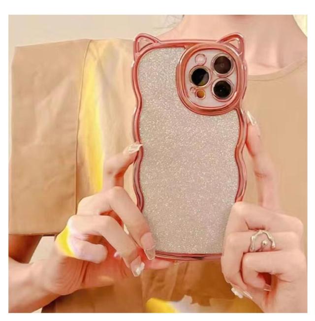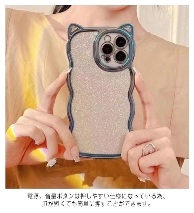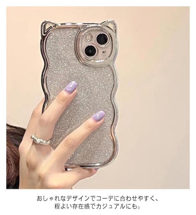 | キュートな猫の耳とウェーブフレームが魅力的なキラキラiPhoneケース おしゃれなデザインでコーデに合わせやすく、程よい存在感でカジュアルにも。 流行りのウェーブのようなうねうねフレームアイフォンケース。 電源、音量ボタンは押しやすい仕様になっている為、爪が短くても簡単に押すことができます。 | |