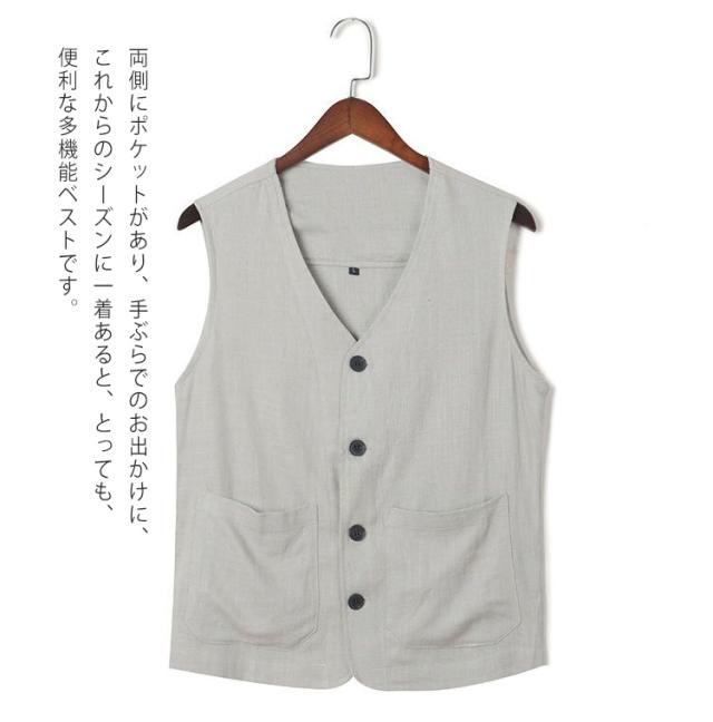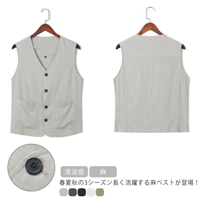 麻 ベスト メンズ ジレ サマーベスト 前開き リラックス 薄手 Vネック 紳士 おしゃれ 麻 春夏 リネンベスト メンズベスト スーツベスト 清涼感 無地 シンプル ビジネス カジュアル 父の日 ギフト プレゼント 敬老の日 秋 通勤 実用的 大きいサイズ レイヤード 送料無料