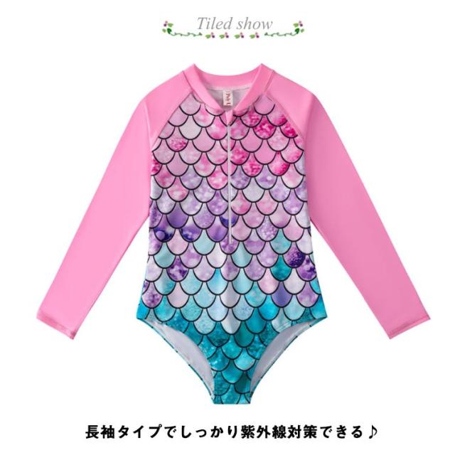 女の子 水着 長袖 人魚 水着 マーメイド 水着 オールインワン キッズ 水着 おしゃれ 子供 水着 ワンピース 人魚姫 ベビー水着 みずぎ 女の子 ワンピース 水着 スクール水着 人魚 魚の鱗 ジュニア 水着 ワンピース スイムウェア 海水浴 夏 水遊び 水泳 温泉 撮影写真 送料無料