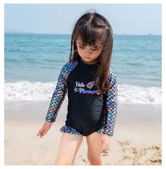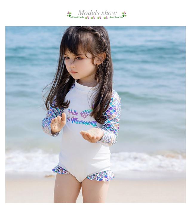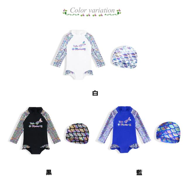 マーメイド 水着 オールインワン フリル水着 スクール水着 キッズ 水着 長袖 女の子 水着 キャップ付き 2点セット 人魚 水着 子供 水着 ワンピース 人魚姫 ベビー水着 女の子 ワンピース 水着 人魚 魚の鱗 送料無料