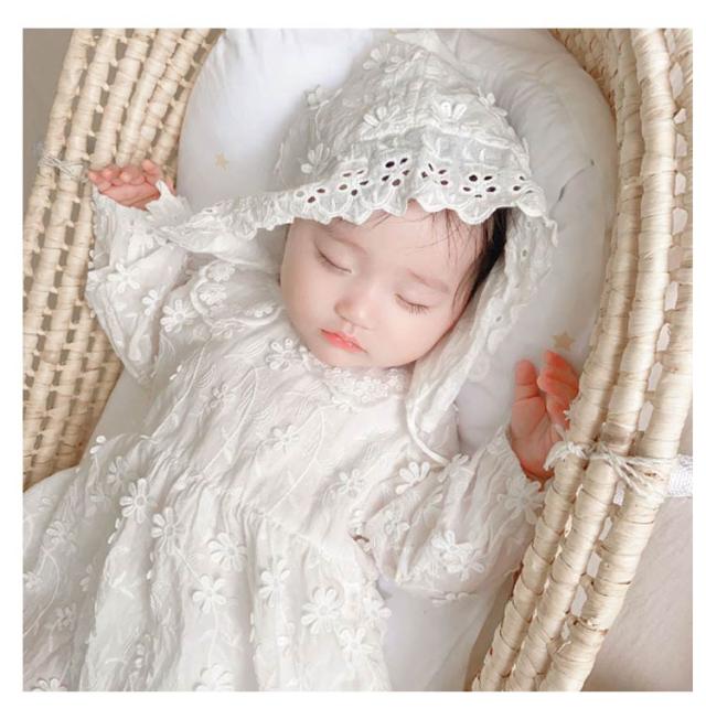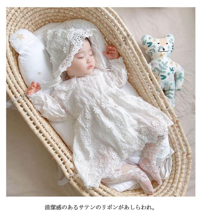セレモニードレス ロンパース 帽子付き 新生児 ベビー服 ワンピース ベビー用品 ナチュラル系 退院 女の子 ワンピース ロンパース お宮参り 花柄ドレス 出産祝い ベビー ドレス フォーマル 白 赤ちゃんドレス お披露目 2ケ月〜3歳