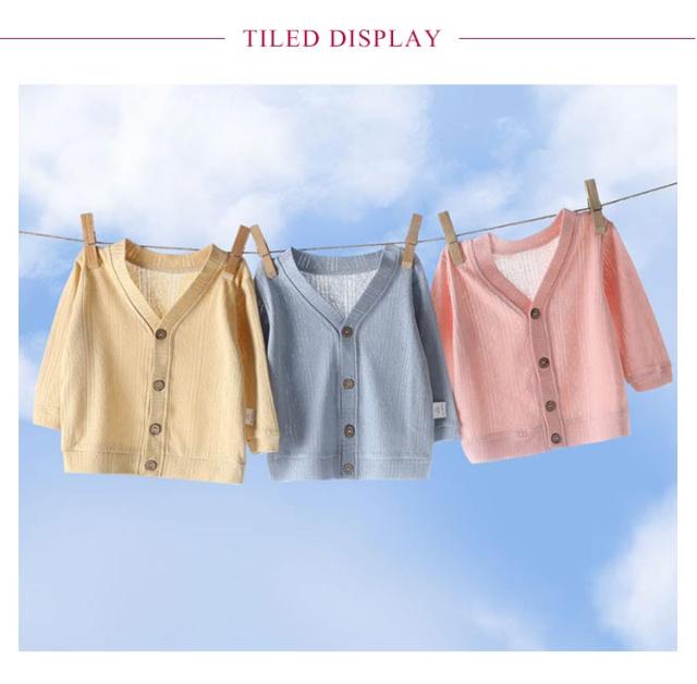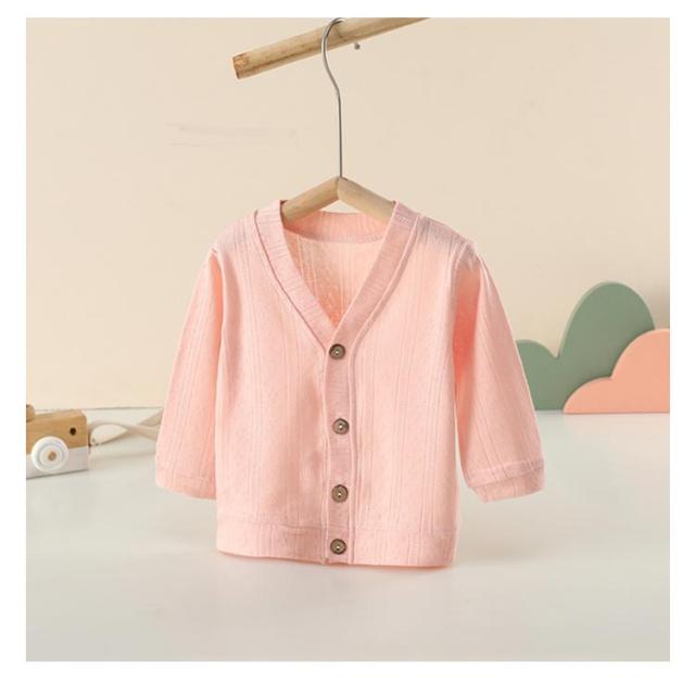 サマーカーディガン ベビー 綿 コットン ニットカーディガン ベビー服 キッズ UVカット カーディガン 赤ちゃん 女の子 男の子 夏 トップス 長袖 薄手 冷房対策 おしゃれ 子ども服 かわいい 涼しい 日焼け止め vネック 羽織 通学 通園 66cm 73cm 80cm 90cm 100cm