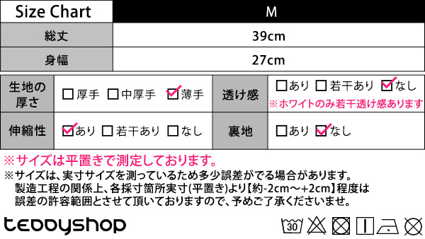 製造工程の関係上、各採寸箇所実寸(平置き)より【約-3cm〜+3cm】程度は