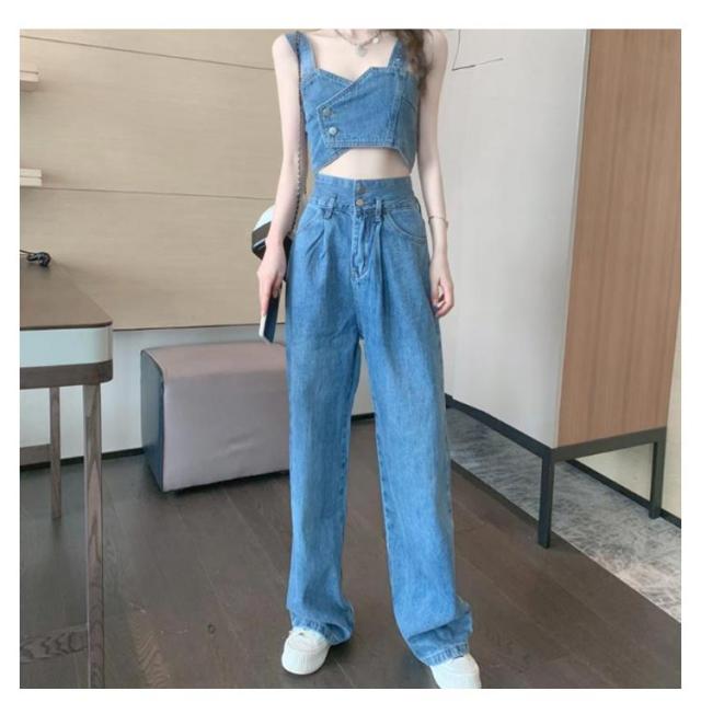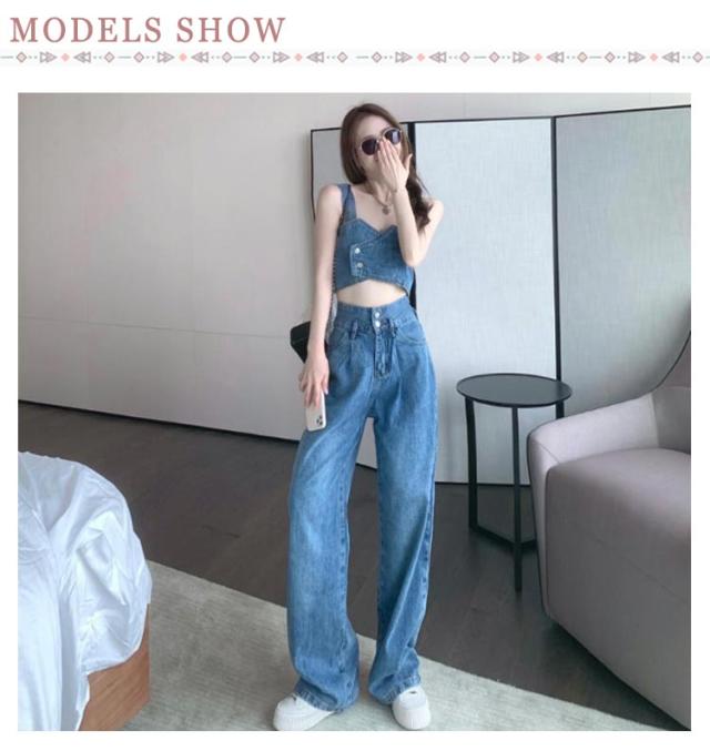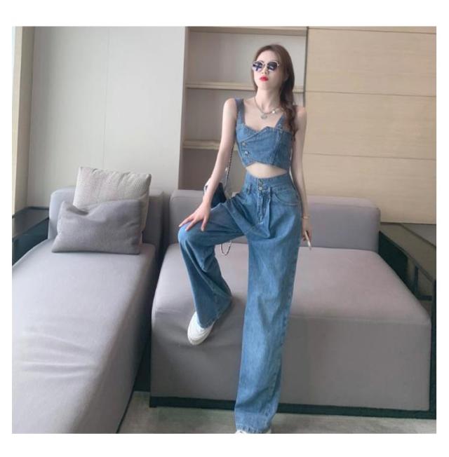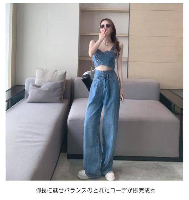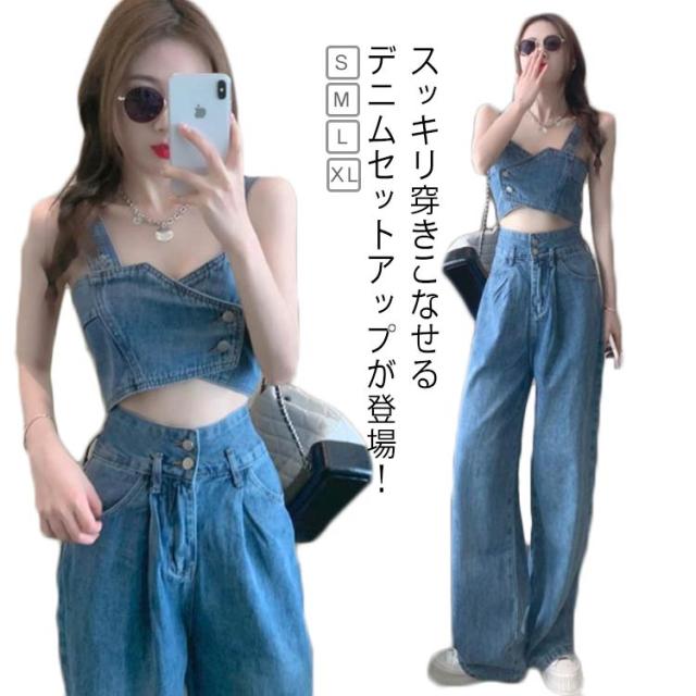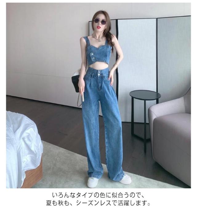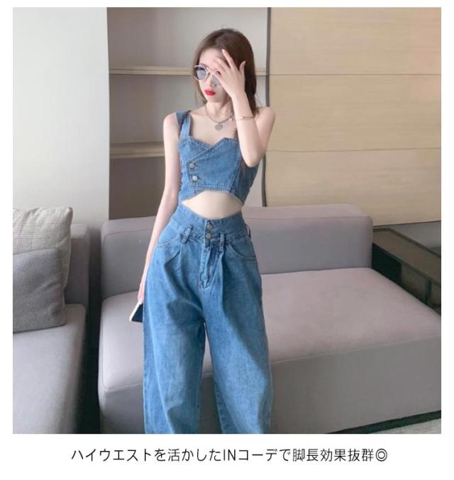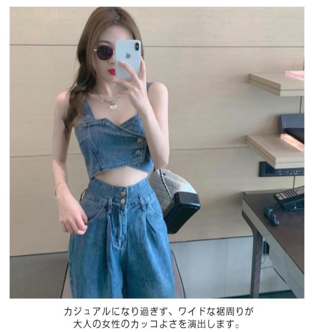デニム セットアップ レディース ジーンズ デニムパンツ デニムタンクトップ タンクトップ ワイドパンツ ダンス衣装 ヒップホップ 可愛い へそ出し ステージ衣装 ジュニア ダンス ジージャン ジーンズ おしゃれ カジュアル 春 夏 春夏 送料無料