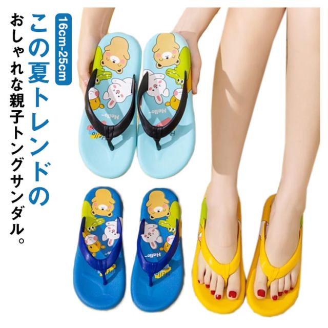 トングサンダル キッズ 大人 ビーチサンダル バススリッパ ビーサン 女の子 男の子 ルームシューズ シャワーサンダル 子供用サンダル ルームシューズ 春用 滑り止め 小学生 通園 女児 海 プール リゾート アニマル柄 送料無料