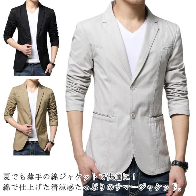 ジャケット メンズ 春夏用 綿 コットン テーラードジャケット サマージャケット アウター 春 夏 秋 軽い 薄手 大きいサイズ 綿 涼しい 通気性 ライトアウター カジュアル ビジネス 父の日 プレゼント送料無料