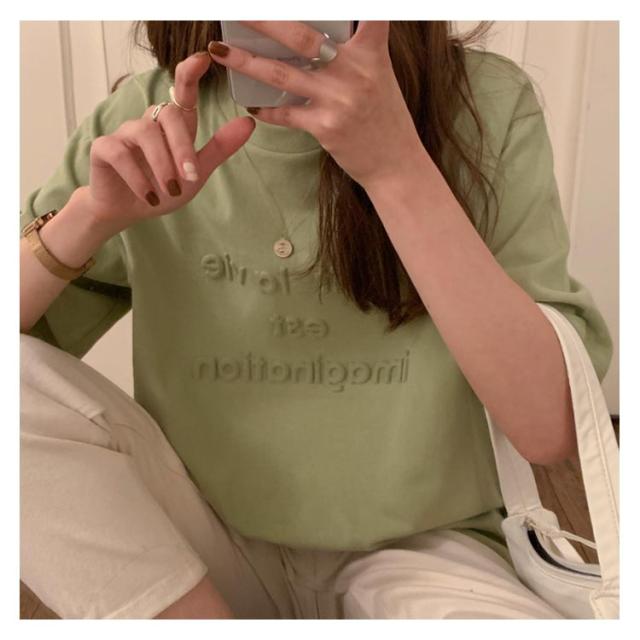 | さりげなさが魅力のエンボス加工を施したロゴTEEが再登場。 エンボス加工で、さり気ないロゴがアクセントに。シンプルだけど大人可愛く着こなせる♪ 程良くゆとりがあり、綺麗に着こなせます。さりげなくふわっと優しく体型をカバーしてくれます。 プリントTシャツとは少し違った雰囲気で、大人っぽくモードなテイストで着ていただけます。 一枚でトップス使いに、また無地Teeのようにインナー使いにももってこいな一枚! | |