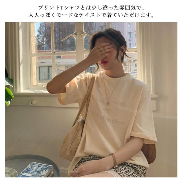 エンボス加工Tシャツ 半袖Tシャツ カットソー クルーネック エンボス ロゴ ワンポイント ドロップショルダー ロゴTシャツ プリントTシャツ 立体的な ロゴ プルオーバー 体型カバー ゆったり 夏 エンボス加工 TEE ロゴT 送料無料