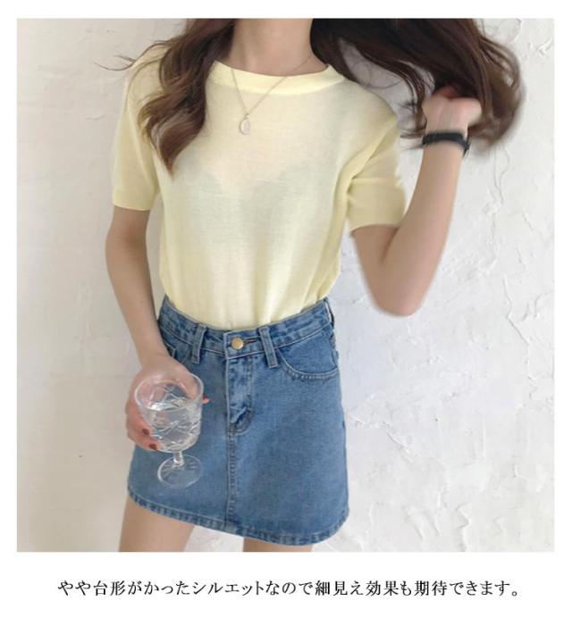 | 今っぽい雰囲気漂うデニムのミニスカート。 シンプルながらハイウエストな設計で脚長効果&着回し力抜群のアイテム♪ やや台形がかったシルエットなので細見え効果も期待できます。肌触りの良いやわらかいデニム生地を採用しているので穿き心地も◎ Tシャツとあわせてぐっとカジュアルに、レーストップスと合わせてガーリーに、旬のショート丈トップスと合わせてセクシーにも。 万能に使える一枚です!ロング丈のアウターと合わせて着痩せ華奢見えコーデもオススメです♪ | |