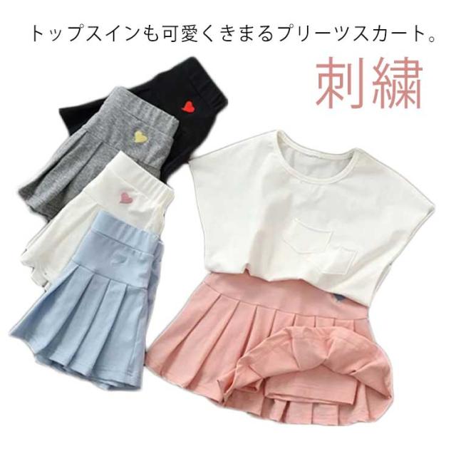 スカート 子供服 女の子 パンツインスカート 送料無料 プリーツ スカパン プリーツスカート 刺繍 ミニスカート フォーマル カジュアル キッズ ジュニア 無地 ミニ 発表会 ピアノ コンクール 通学 90 100 110 120 130 140 150 160 170