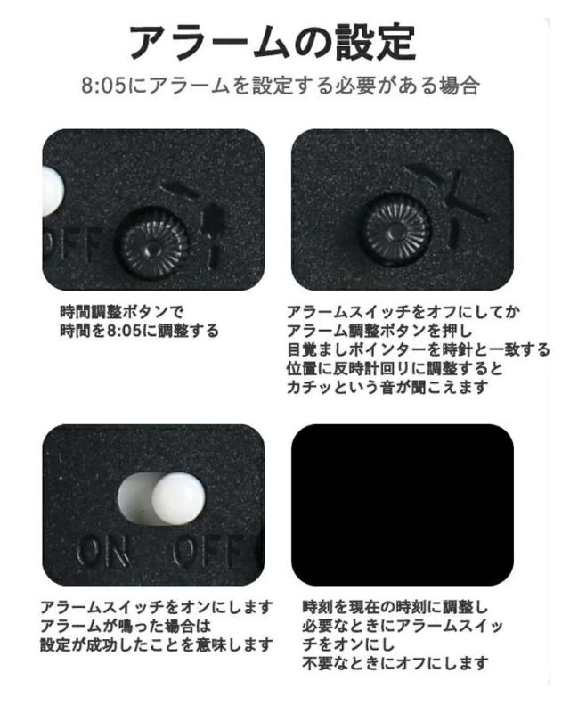| 【高級感あふれる金属塗装知育目覚まし時計】 ・高級感あふれる金属塗装面は、マットな質感で指紋汚れなどが付きにくい素材 ・秒針のコチコチ音がない連続秒針、枕元に置いても静かな時計です ・暗い場所で時間を確認したい時に便利なライトのスイッチはわかりやすい場所(裏面)にあり、時間の確認も楽にできます ・ちょこんと丸い脚と個性的な数字、空洞のある針で、インテリア性も抜群です | |