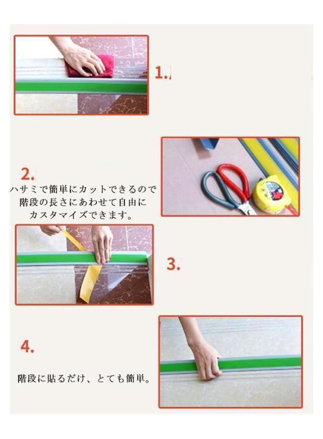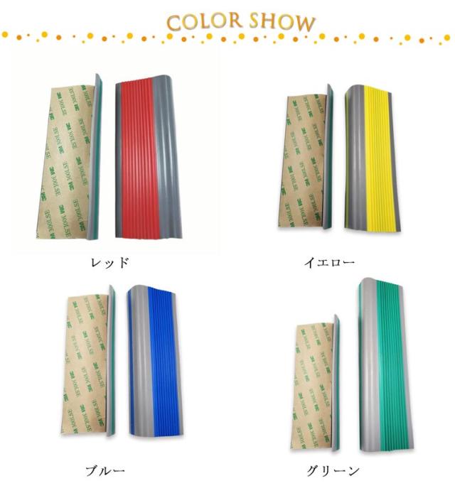 | 階段事故防止対策などにおすすめの階段すべり止めシート! L字形 10本セット 階段の角に合わせて貼るだけ、とても簡単! 防水仕様だから屋外での使用も安心です。 表面には溝をデザインしていますので滑りにくくなっています。 強力粘着タイプでしっかり固定できます。 階段に貼るだけ、とても簡単。 ハサミで簡単にカットできるので階段の長さにあわせて自由にカスタマイズできます。 | |