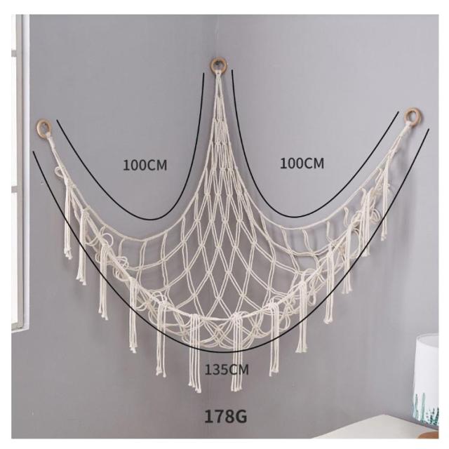 | 超かわいいボヘミアン風!ぬいぐるみやおもちゃを収納できるハンモック 三角形構造なので安定して使え、ぬいぐるみやおもちゃをハンモックに載せてかわいく浮かせて収納出来ます。 ざっくりとした網目とフリンジがおしゃれで、ちょっとした子供部屋のアクセントになります。 これなら床におもちゃが散らばらなく、お掃除も楽にできます。 使わないときは、コンパクトにまるめて収納することができるから、便利です。 | |
