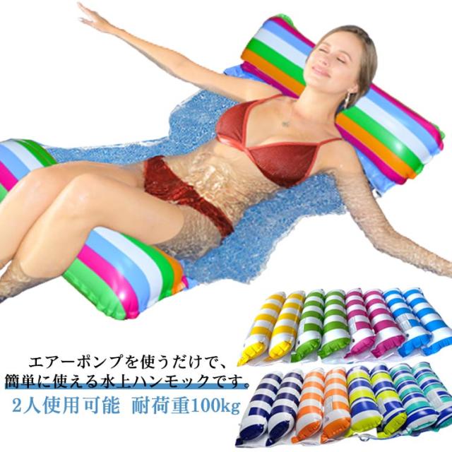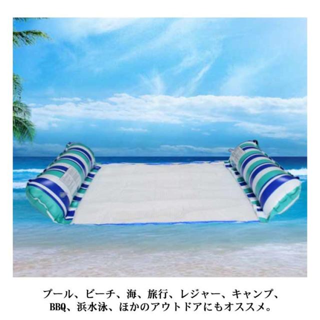 フロート 浮き輪 大人用 水上ハンモック ウォーターネット 2人使用可能 耐荷重100kg 水遊び用 エアポンプ付き 夏休み 強い浮力 海遊び プールパーティー 海水浴 日光浴 暑さ対策 ビーチ レジャー 送料無料