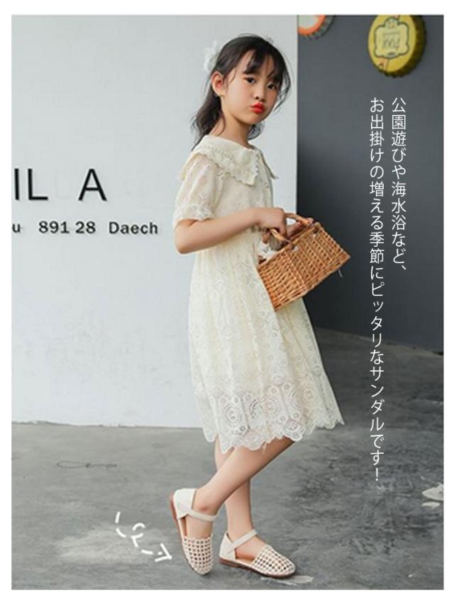 女の子サンダル キッズ パンプス メッシュ 子供靴 子供サンダル 夏 ベルトサンダル 可愛い おしゃれ 軽量 ジュニア かわいい キッズサンダル 保育園 幼稚園 小学生 通園 海 プール 水遊び リゾート 旅行 ぺたんこ 歩きやすい 誕生日 ギフト 送料無料