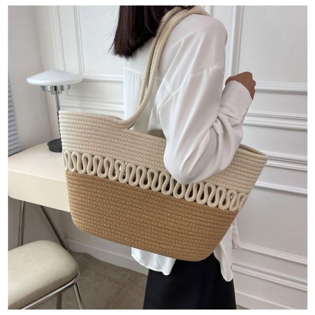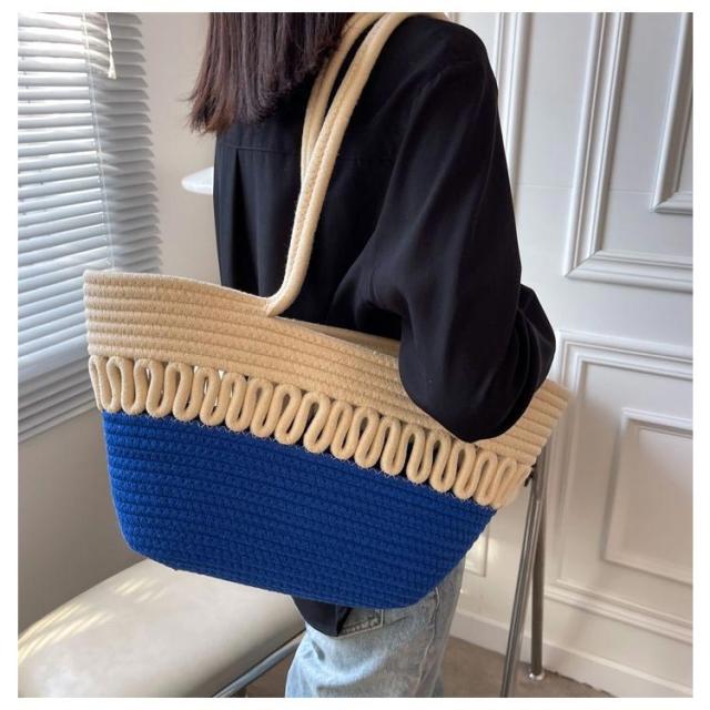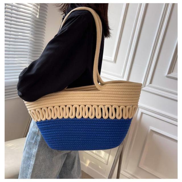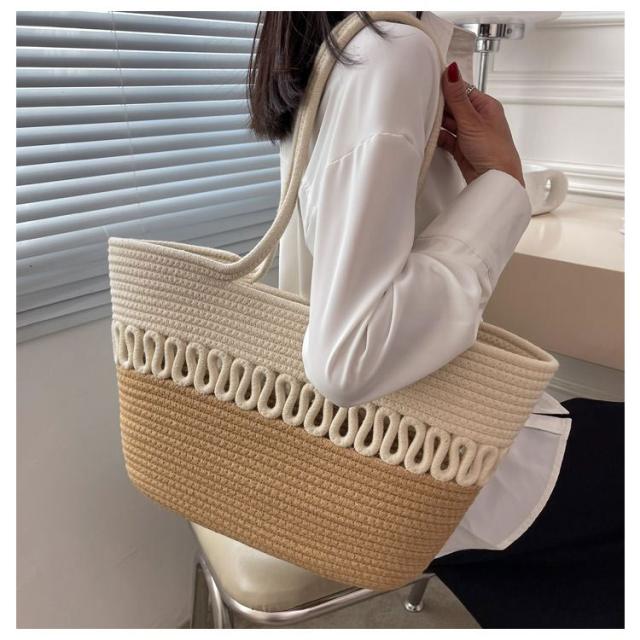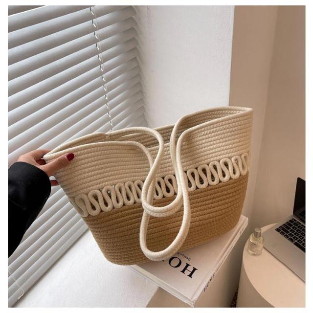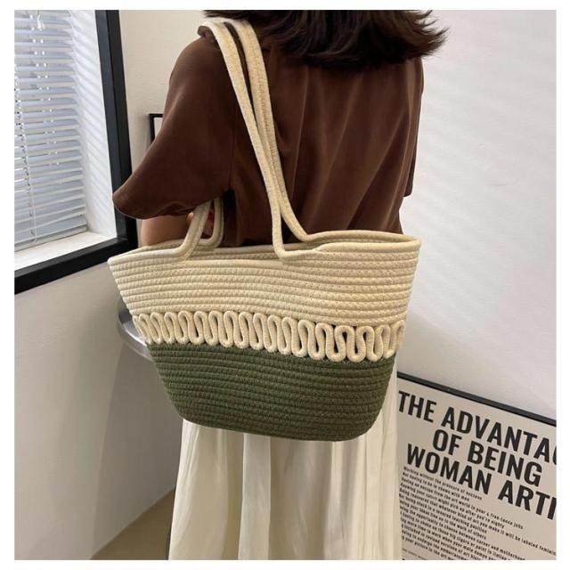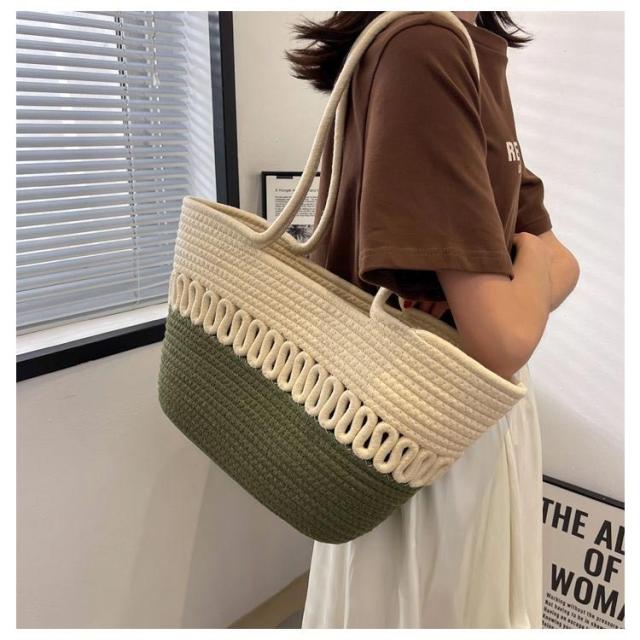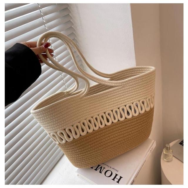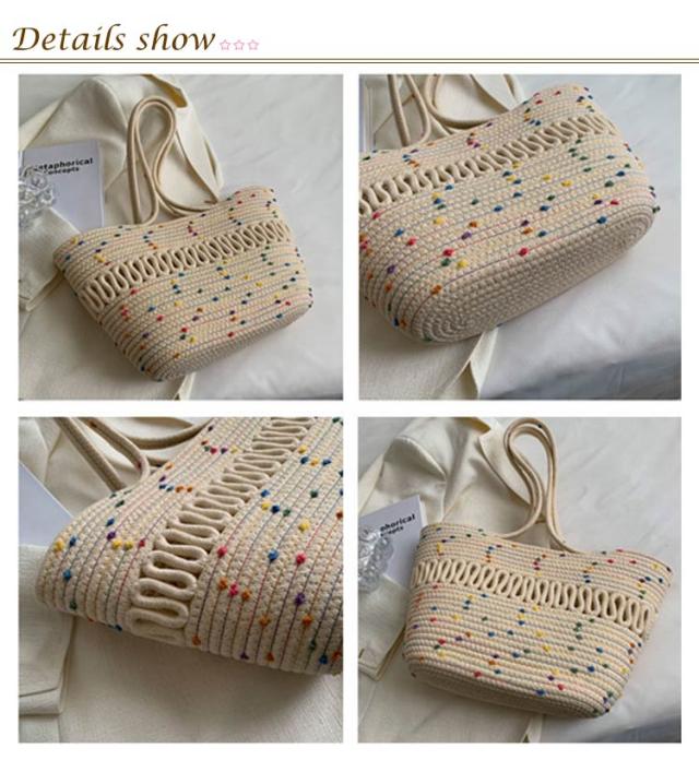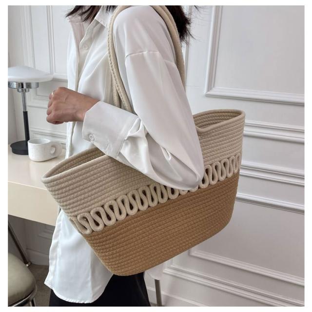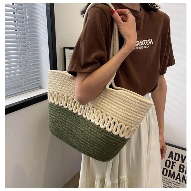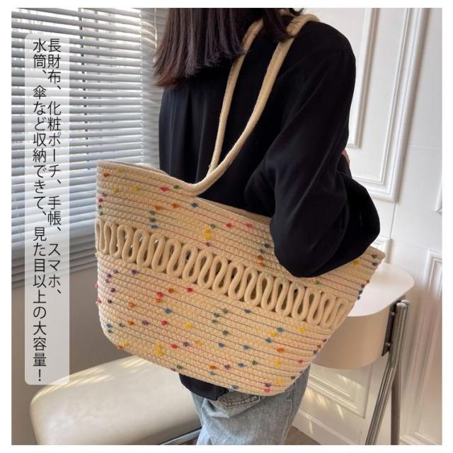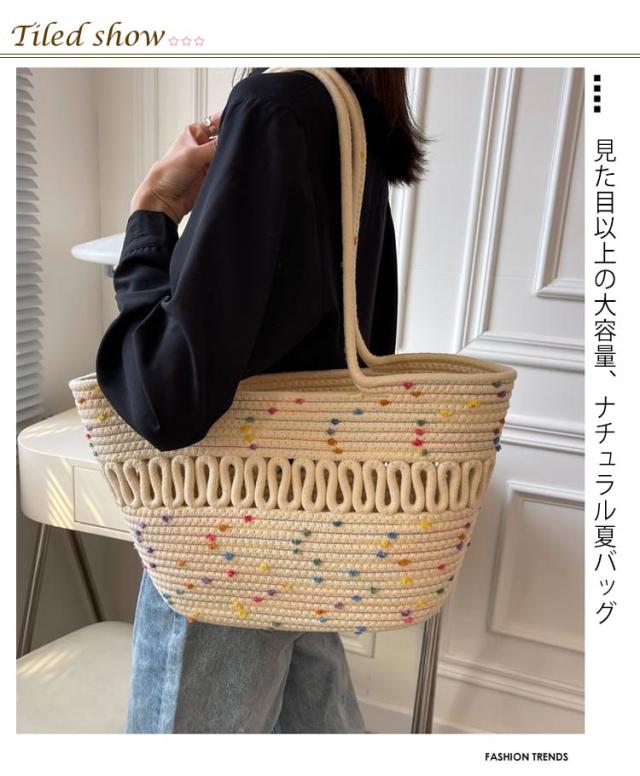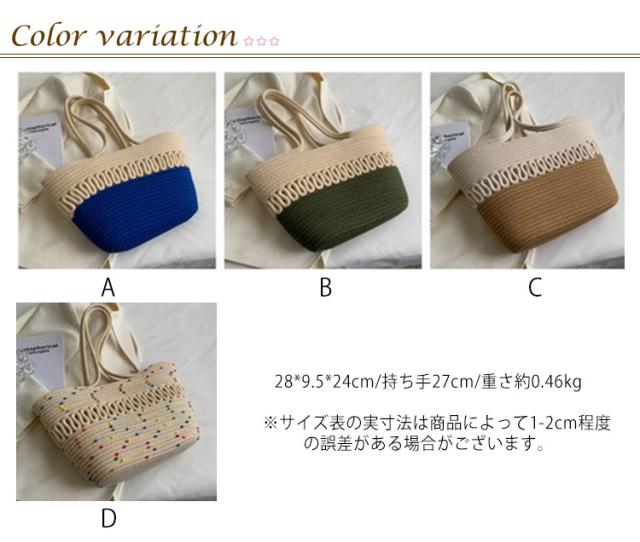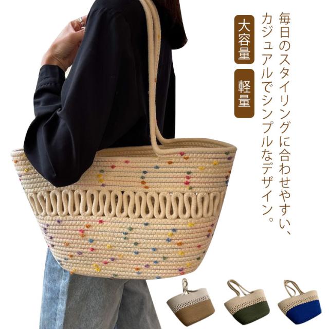 かごバッグ トート レディース 手編み トートバッグ 編みバッグ 大容量 肩掛け A4 綿糸 エコバッグ ナチュラル 夏バッグ ストローバッグ 可愛い おしゃれ 高見え 手提げ 夏 海 リゾート 旅行 お出かけ 軽量 通勤 通学 ギフト 送料無料 プレゼント