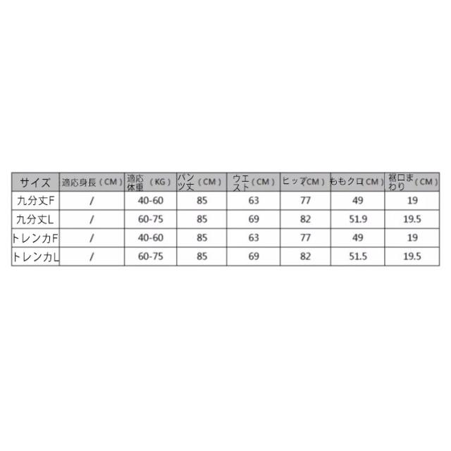 | サイズについての説明 | F パンツ丈約90cm ウエストストレッチ最大106cmまで ヒップストレッチ最大130cmまで 太もも周りストレッチ最大86cm まで ※上記サイズは平置き実寸になります。 サイズ表の実寸法は商品によって1-3cm程度の誤差がある場合がございます。 |