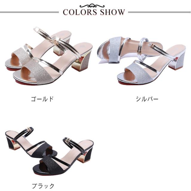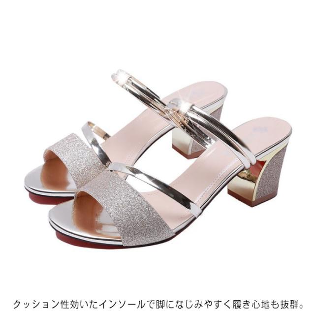 サンダル レディース ミュール 春 夏 ヒール 6cm ハイヒール 太めヒール ミュール ミュールサンダル キラキラ パーティー サンダル シューズ 疲れない 歩きやすい 通勤 オフィス 送料無料