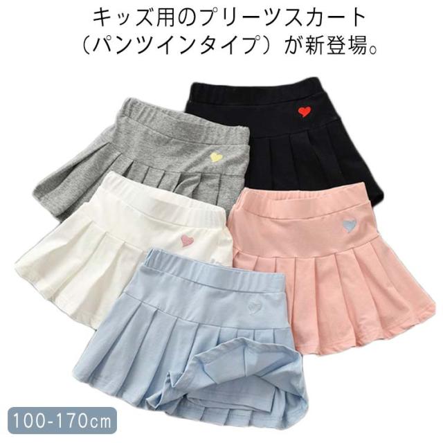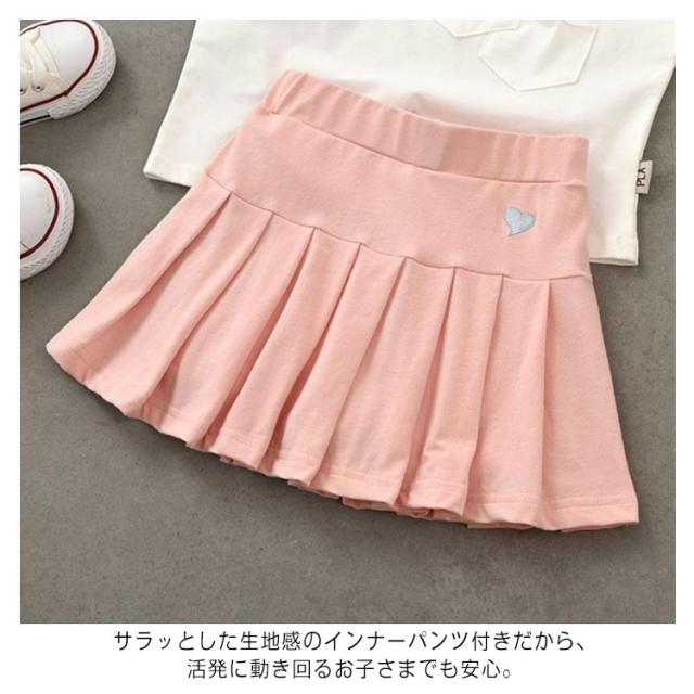 子供 プリーツスカート キッズ インナーパンツ付きスカート フレアスカート 刺? ハート スカート ミニスカート フレア スカート インナーパンツ ウエストゴム 涼しい パンツインスカート プリーツ スカパン 春 夏 送料無料