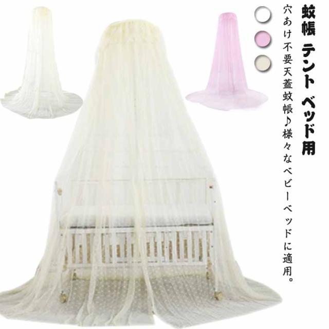 蚊帳 テント ベッド用 モスキートネット 穴あけ不要 吊り下げ蚊帳 ベビーベッド 天蓋 虫よけネット 蚊よけ 虫除け ベビーベッド用カーテン メッシュ エアコン風よけ ベビー 5段高さ調節 お姫様風 かや 幼児 赤ちゃん 睡眠 安眠 防塵 防風