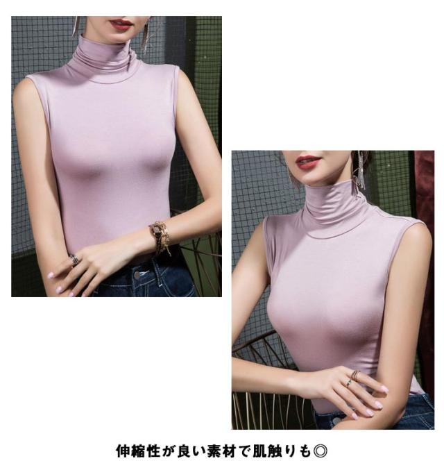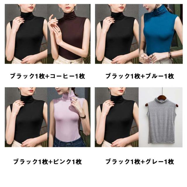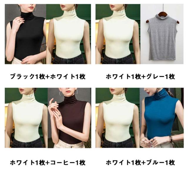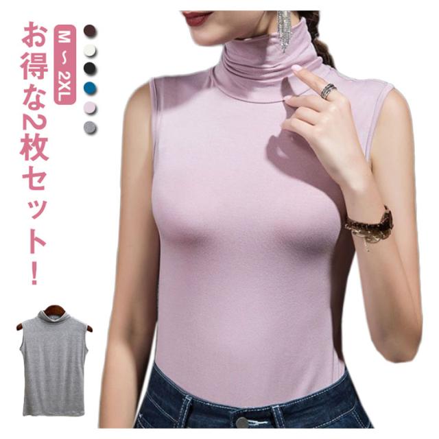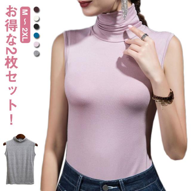 ハイネック ノースリーブ タートルネック tシャツ 送料無料 2枚組 カットソー 春夏 薄手 ボトルネック UVカット カットソー 紫外線防止 トップス 紫外線対策 秋冬インナー ハイネック ノースリーブ タートルネック 無地 シンプル カジュアル