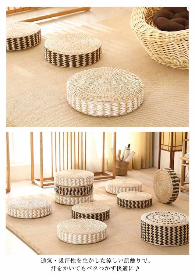 座布団 ガマ クッション 丸型 円形 おしゃれ 座イス 蒲 香蒲 ざぶとん 手編み 座椅子 座イス フロアクッション 座蒲 坐蒲 和室 瞑想 座禅クッション 座禅布団 座禅用座布団 夏用 涼しい 通気性 天然素材 シンプル ナチュラル 北欧 和風 来客用 ギフト