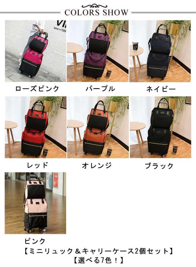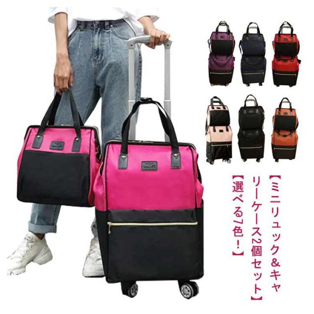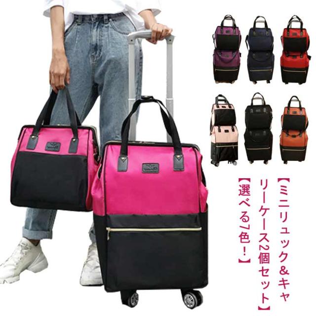 | 【ミニリュック&キャリーケース2個セット】 【選べる7色!】 男女兼用で使えるシンプルなデザイン。 耐久性に優れたオックスフォード、水を弾く撥水加工。 使わないときはキャリー台に折りたたみ可能。 360度回転4輪のキャスター搭載してスムーズで軽やかな走行を可能。 | |