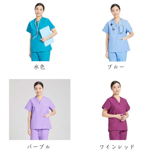 スクラブ パンツ 上下セット 白衣 医療用 男性 女性 動きやすい ストレッチ カラースクラブ 半袖 ポケット付き ズボン スクラブセット メディカル ユニフォーム 医師 ナース服 介護服 手術着 制服 看護師 配色 パイピング おしゃれ 男女兼用
