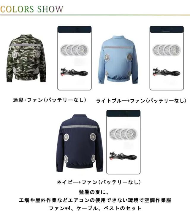 空冷服 作業服 セット ファンジャケット 長袖 ファン付き作業服 ファン4個 扇風機服 バッテリーなし 作業着 日焼け防止 ファン付き作業着 ウェア ワークウェア 薄型 男女兼用 メンズ レディース 夏 熱中症対策 UVカット 撥水加工 通気性 釣り 涼しい 暑さ対策