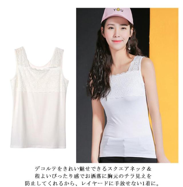 送料無料 ブラ紐隠しインナー タンクトップ 胸元レース レディース 肩紐広め タンク インナー トップス ノースリーブ レースキャミソール ブラ紐を隠せるインナー チラ見せ モダール ストレッチ 快適 肌着 夏 涼しい かわいい シンプル