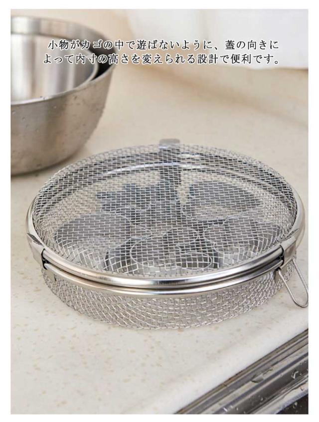 | ・食洗機の中でかさばらずにまとめて洗える食洗器用の小物ネットです。 ・食洗機の中で小物がひっくり返ったり、すき間に落ちない。 ・水筒のパッキン、箸置きや小さなカトラリー、お弁当のおかずカップなどに ・錆びにくいオールステンレス製。 ・蓋がしっかり閉まるから安心して食洗機で洗えます。 ・細かなメッシュで、小さなピックも落ちません。 ・小物がカゴの中で遊ばないように、蓋の向きによって内寸の高さを変えられる設計で便利です。 | |