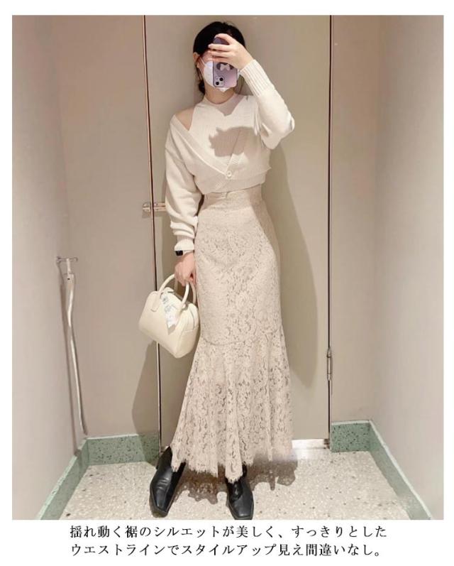 レーススカート タイト スカラップ レース マーメイドスカート ロングスカート マキシ丈 レディース タイトスカート マーメイド 30代 40代 50代 きれいめ 大人可愛い エレガント フェミニン お出かけ 春夏用 秋 【送料無料】