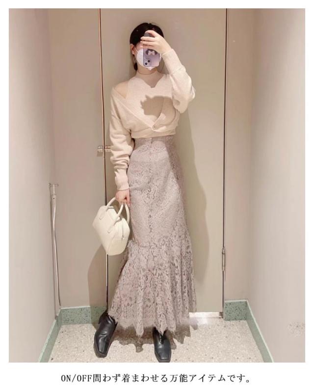 | マーメイドシルエットとレース素材が着るだけで女性らしい印象漂うスカート? ハイウエスト&ロング丈がスタイルアップ効果抜群。 揺れ動く裾のシルエットが美しく、すっきりとしたウエストラインでスタイルアップ見え間違いなし。 ON/OFF問わず着まわせる万能アイテムです。 | |