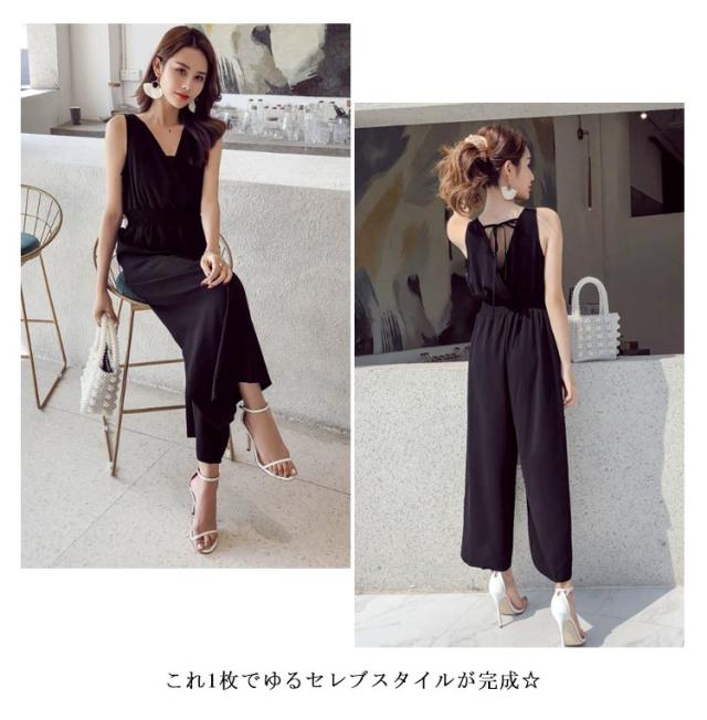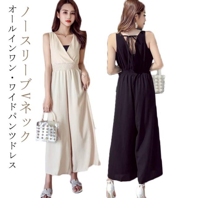 パーティードレス 結婚式 レディース パンツドレス セットアップ ノースリーブ Vネック オールインワン ワイドパンツ ロング丈 春 夏 ママスーツ パンツスーツ セレモニー お呼ばれ 二次会 パーティー デイリー 普段着 おしゃれ