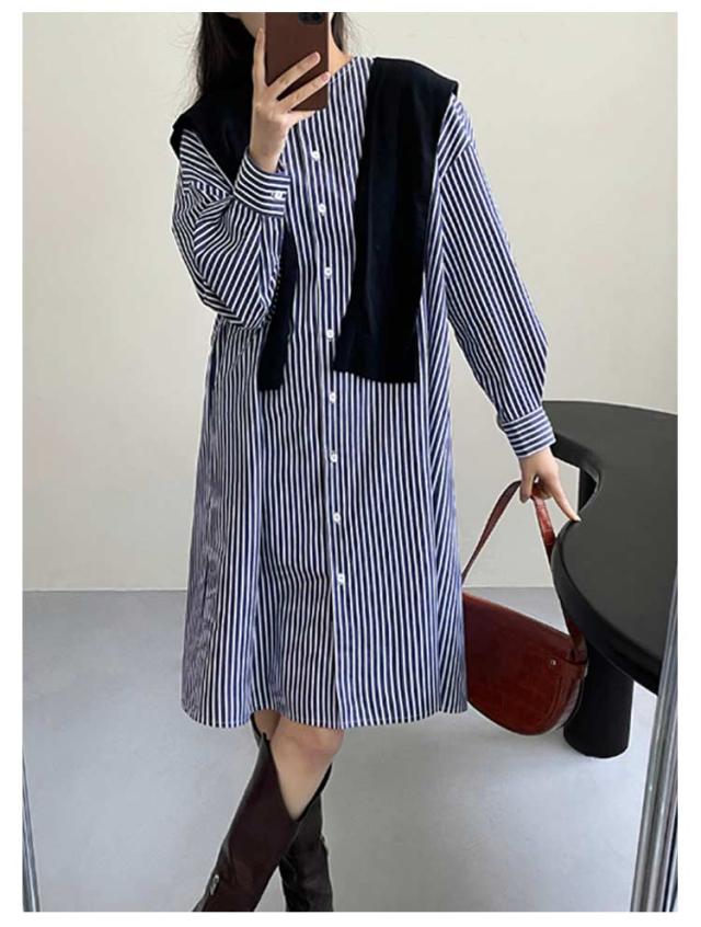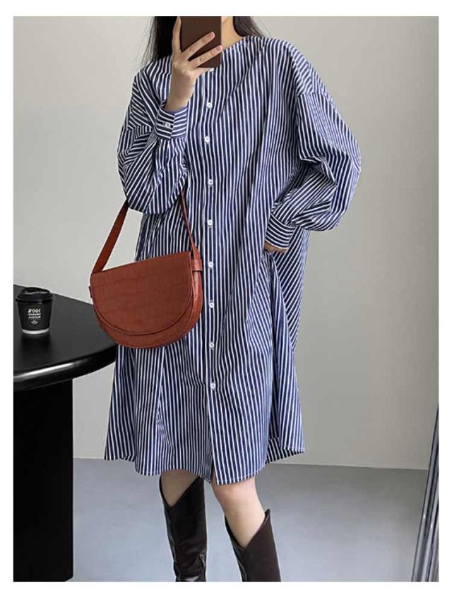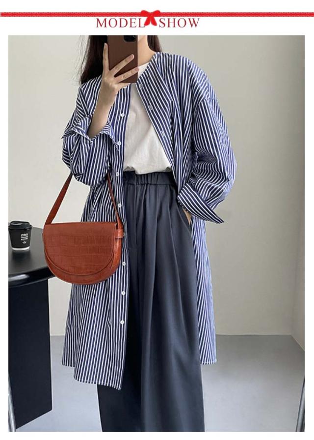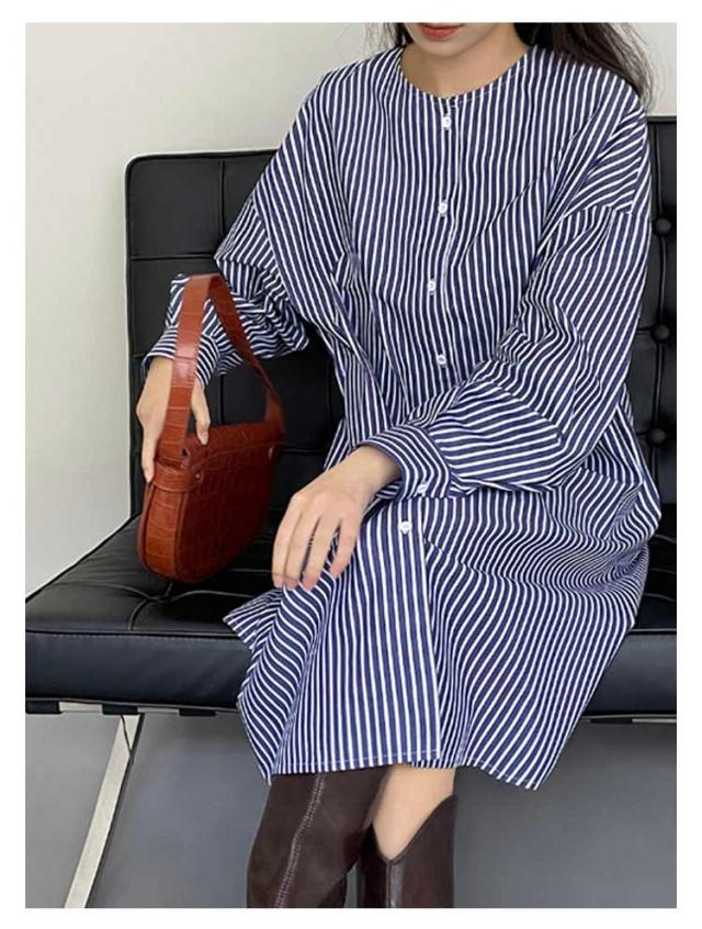| 1枚でワンピースとして、前を開けて羽織りとしても重宝するシャツチュニック。 ノーカラーがスッキリした首回りを演出! リラックス感が漂うシルエットが◎ ストライプ柄で縦のラインを強調し、スタイルよく見せてくれるのも嬉しいポイントです。 上にニットベストをレイヤードしたり、普段コーデの羽織りにしたりとアレンジが楽しめるアイテム。 1枚でワンピとして着るのはもちろんボタンを開けて羽織としても着回し力の高いアイテムです。 さらっとした素材感でロングシーズン着回しいただけます。 | |