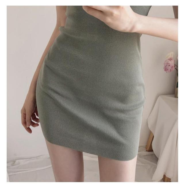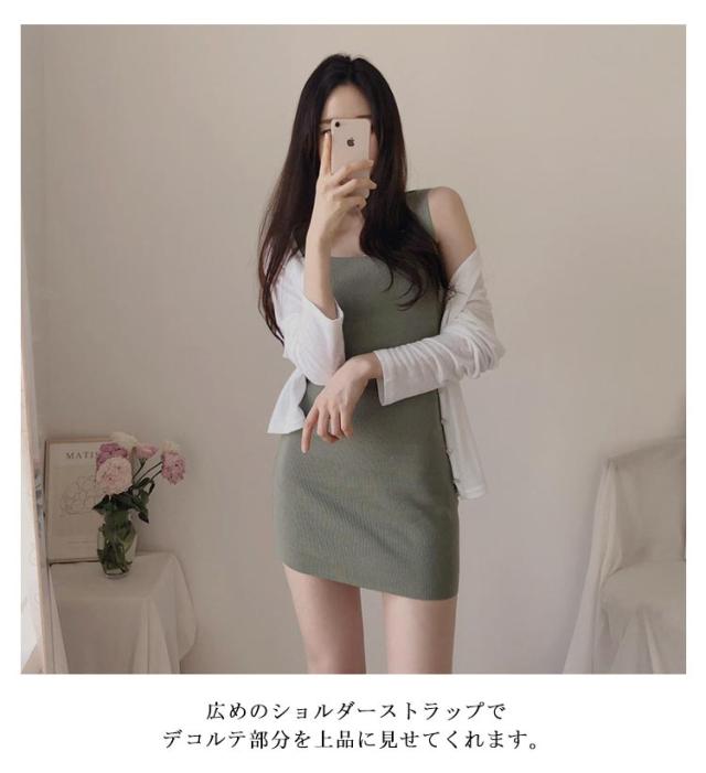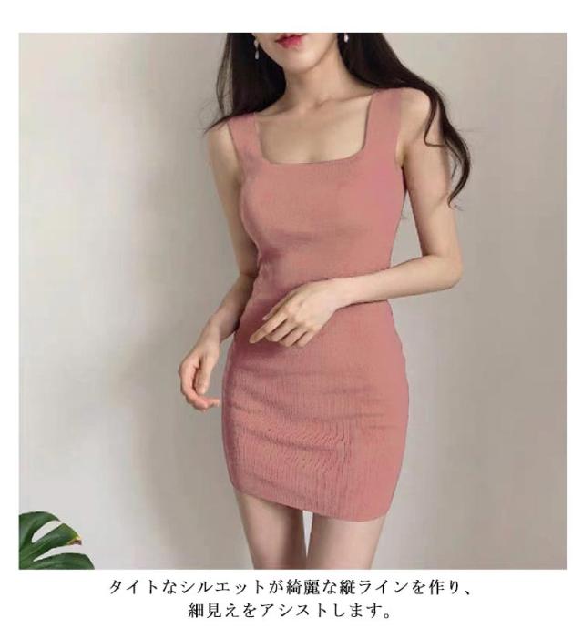 ワンピース リブニット タイトワンピース ミニ丈 スクエアネック ノースリーブ レディース ノースリーブワンピース ミニワンピース サマーニット 細身 ニットワンピース 夏服 無地 シンプル 大人 きれいめ 黒 ブラック グリーン 【送料無料】