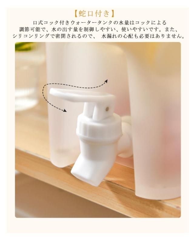 | 【3.5L大容量】 3.5Lは10本のコーラに相当し、家族や友人が集まる、たくさんの冷たい飲み物、大口径の蓋、開けやすく、氷を入れやすい、追加する必要がありますフルーツ、ダブルイヤーリフトデザイン、冷蔵庫に簡単に移動してテーブルの端に置くことができます 。 【蛇口付き】 口式コック付きウォータータンクの水量はコックによる調節可能で、水の出す量を制御しやすい、使いやすいです。また、シリコンリングで密閉されるので、 水漏れの心配も必要はありません。 【多機能】 好きなようにあらゆる種類の冷たい飲み物を作ってください。冷たいやかんに果物、お茶、蜂蜜、牛乳、ジュース、アルコールを入れることができます。暑い夏はいつでも冷たい水や飲み物を飲むことができます。 【優れた耐熱性】 食品グレードのPP素材で高温・低温に強く、-20℃〜120℃の温度差に耐えるケトルです。沸騰したお湯を変形せずに直接やかんに注ぐことができます。 【おしゃれ】 掃除が簡単で大容量、上部に蓋があり、新鮮さを保つために密閉され、蛇口が装備されており、便利で実用的です。残りの水量も一目瞭然、わかりやすいです。 【広口デザイン】 シンプルな構造で広口タイプだから奥までしっかり手が届き、洗いやすいアイテムです。大容量で高コスパ。コーヒーにも便利な大容量ポットです。 | |