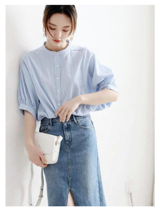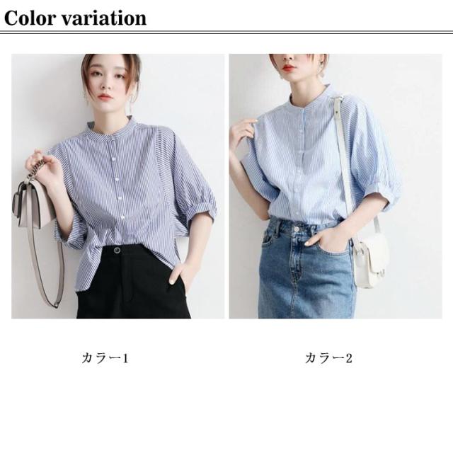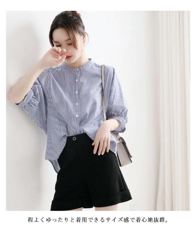 シャツ レディース おしゃれ 夏 ドルマンスリーブ スタンドカラー ストライプ柄 シャツブラウス ストライプ シャツ 立ち襟 襟付き シャツ 春夏 トップス M L XL 2XL 3XL