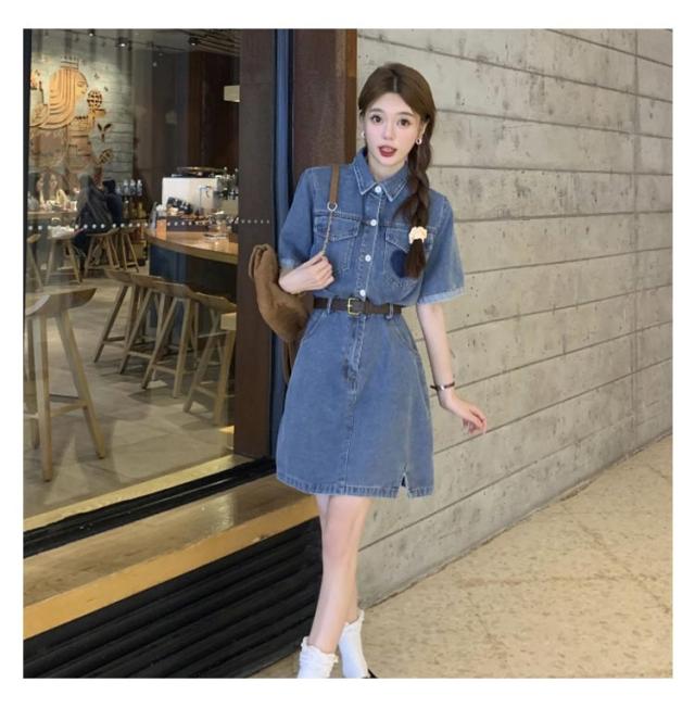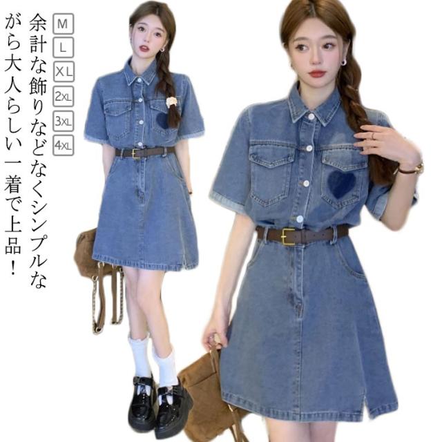 送料無料 デニムワンピース 半袖 デニムワンピ シャツ ワンピース 半袖ワンピース デニム シャツワンピース デニムシャツ 春 夏 秋 レディース 夏ワンピース 大きいサイズ S M L XL シンプル 半袖ワンピ 体型カバー 着痩せ 通勤 上品 上質