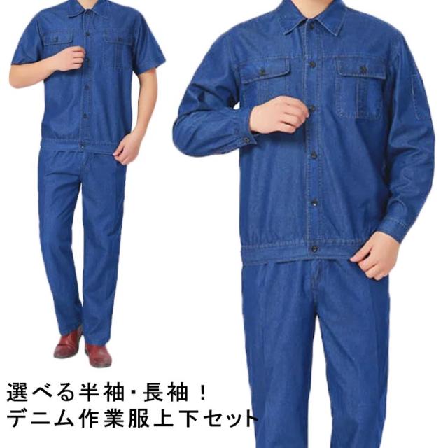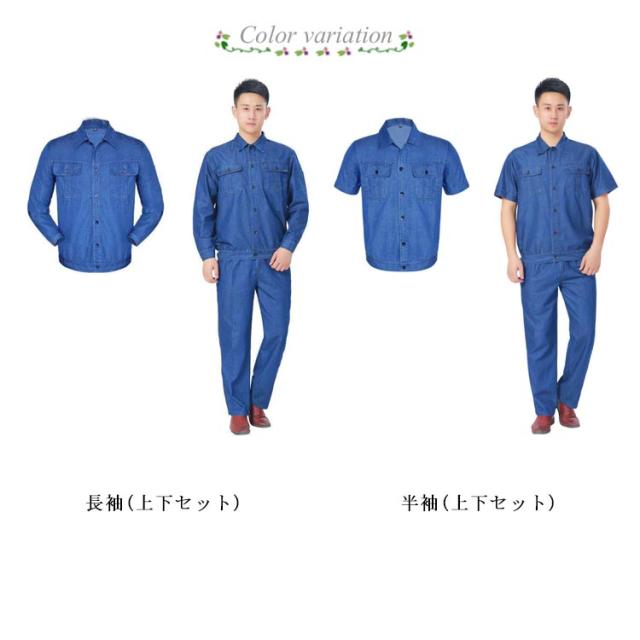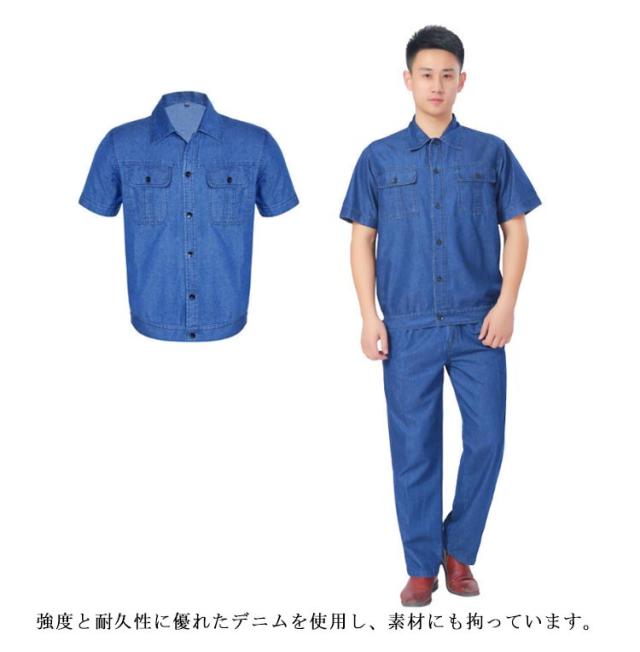 デニム 作業服 上下セット メンズ 半袖 長袖 デニムジャケット デニム ストレートパンツ 春夏用 作業着 ジーパン ジージャン おしゃれ かっこいい オールシーズン 薄手 通気 快適 ユニセックス 現場服 ワークウェア 送料無料