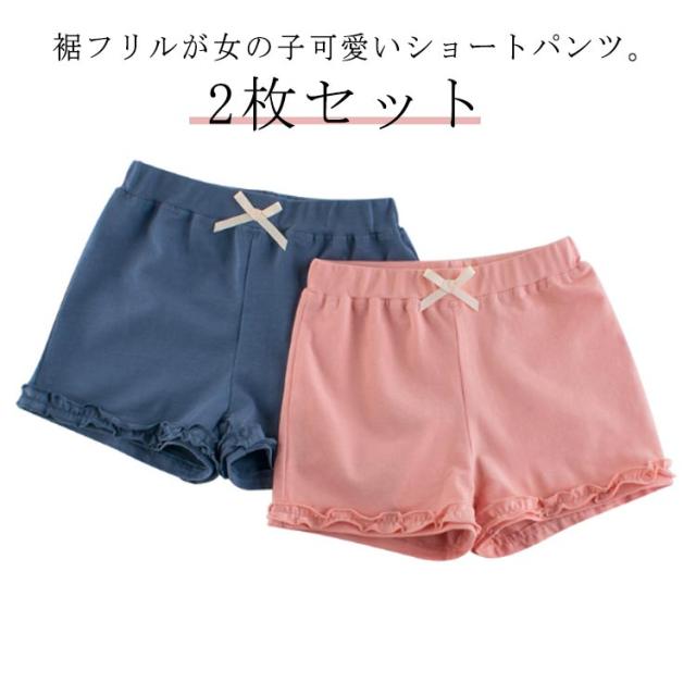 2枚セット 裾フリル ショートパンツ キッズ 90 100 110 120 130 140cm 子供服 女の子 ハーフパンツ 短パン コットン 韓国 こども服 無地 綿 春 夏