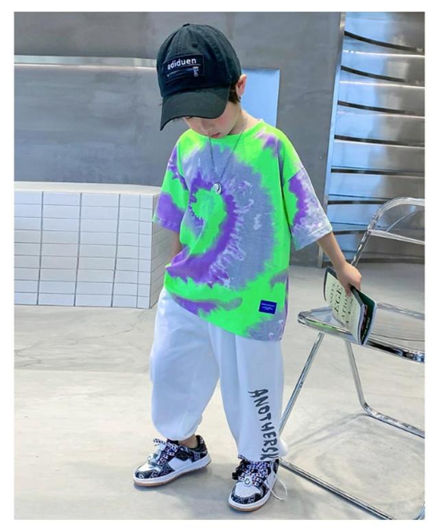 タイダイ Tシャツ キッズ ジュニア 半袖 Tシャツ トップス ユニセックス 子供服 ダンス衣装 タイダイ染めTシャツ アジアン 男の子 女の子 120 130 140 150 160 170cm 小学生 中学生 カラフル 派手