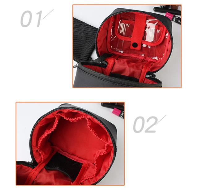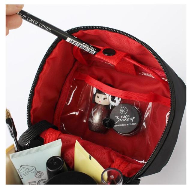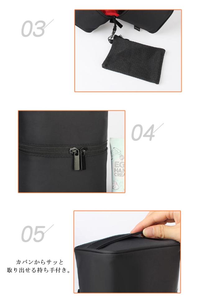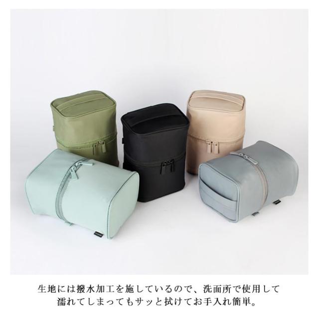 | 持ち歩き用のコスメをすっきり整理整頓できる、縦型メイクポーチ。 メイクブラシや化粧水も立てて収納! 旅行先で散らかりがちな化粧品はもちろん、洗面用品・アメニティグッズも収納ができる◎ 開口部は大きく開くラウンドファスナー式。 内部には小物を細かく分けてキレイに収納できるポケットや、ブラシなどのスティックコスメなどの収納に便利なスペースも完備。 大容量なので化粧ポーチだけでなく、旅行や普段の身の回りの収納にも◎ 丁寧な縫製でこだわってつくられているので丈夫なつくり。 | |