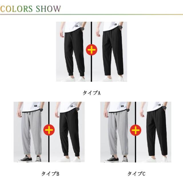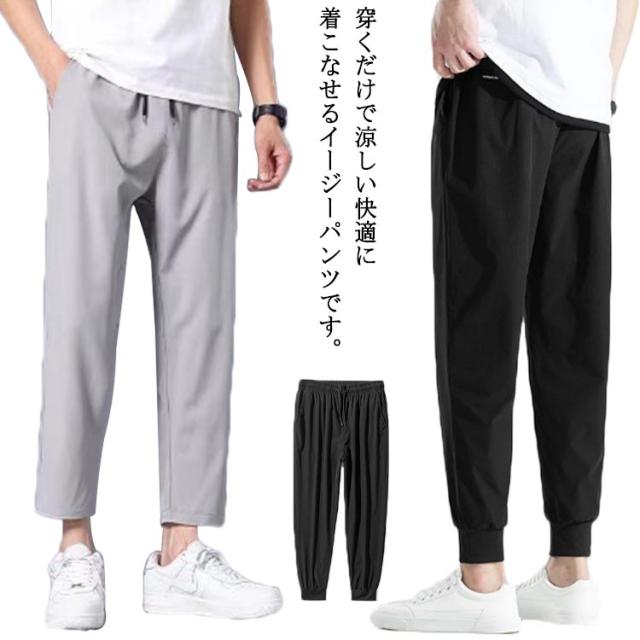 アイスシルク パンツ 冷感パンツ メンズ サルエルパンツ 2点セット ジョガーパンツ イージーパンツ 接触冷感 スウェットパンツ 夏 ゆったり 薄手 ゴルフ ストレッチ 消臭 速乾 通気性 ロングパンツ 涼しい ボトムス ズボン ランニング スポーツ カジュアル 送料無料