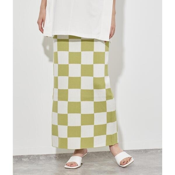 コーデのアクセントにピッタリなブロックチェック柄のニットスカート。